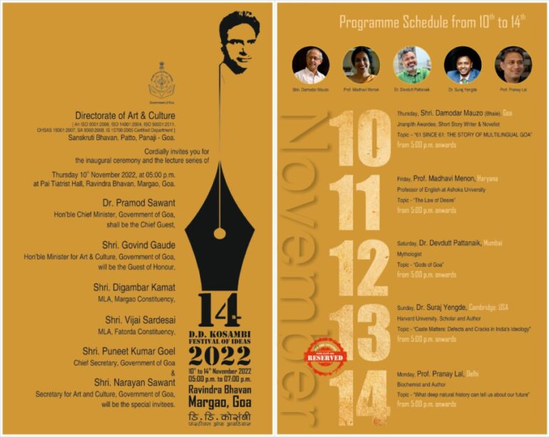 हो महोत्सव ज्यांच्या नांवान घडून येता ते डी. डी. कोसंबी हे संवसारीक पांवड्यार इतिहासकार, गणितज्ञ, व्यासंगी विद्वान म्हूण अजरंवर जाल्यात. ताणी इंडोलॉजी ह्या भारतीय उपखंडांतल्या इतिहास, संस्कृती, भाशा आनी साहित्याचो शिक्षणीक अभ्यास करपी शाखेक एक वेगळो आयाम दिला. म्हत्वाचें म्हणल्यार ताणी वैश्वीक भावचार, धर्मीक एकवट, नैतीक मुल्यां हांच्या प्रसारा खातीर भोव मोलादीक योगदान दिलां. संवसारीक शांतीकायेच्या चळवळींत तांचो व्हड वावर आसा. अश्या एका म्हान उदारमतवादी गोंयकाराच्या उगडासाक ओंपिल्लो हो विचार महोत्सव उजव्या दाव्या विचारसरणेच्या वादांत रद्द जाता ही खरेंच खंतीची गजाल. गोंय राज्याक लजेक घालपी हो निर्णय.
