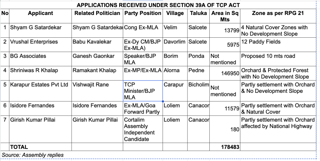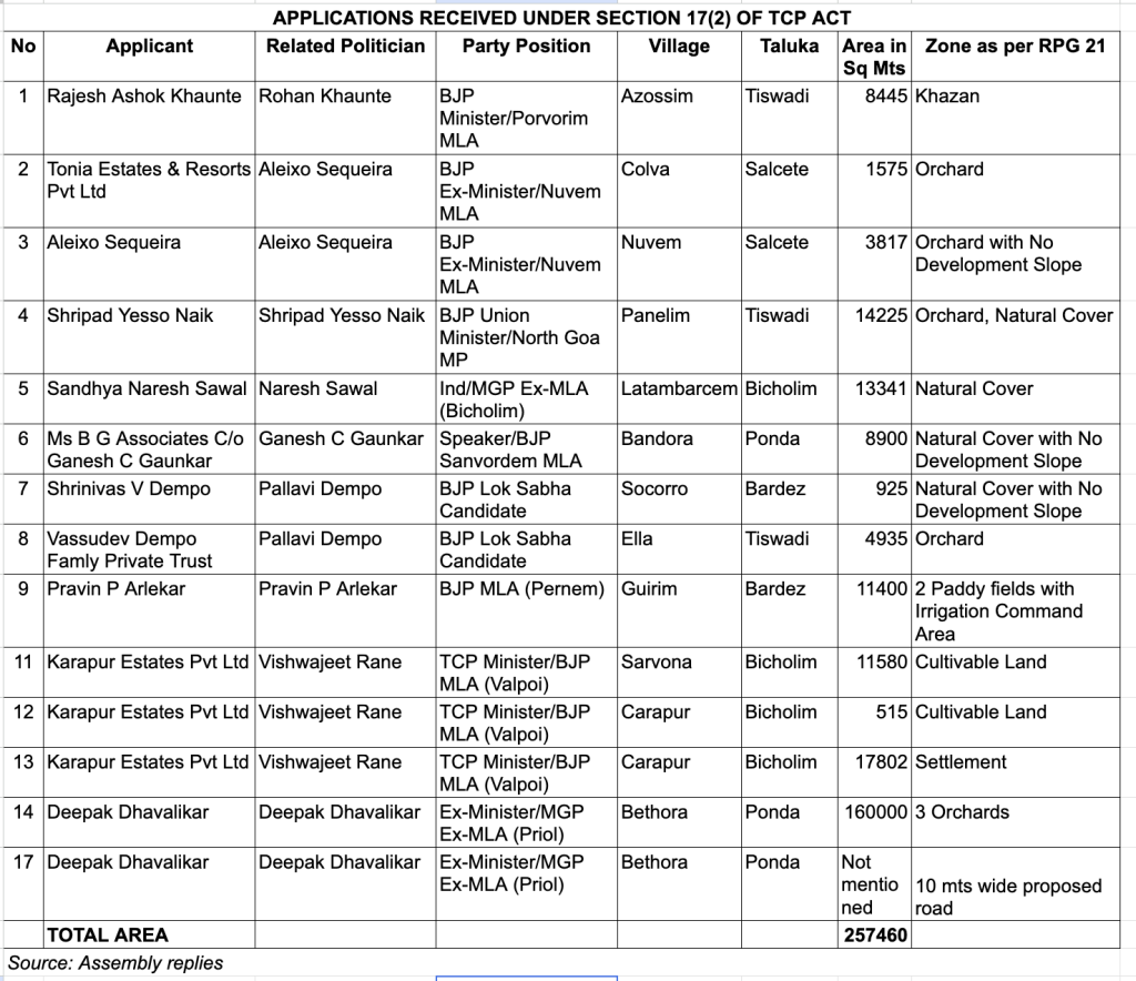 The total area sought to be converted under Section 39A is over 68.62 lakh square metres. Over 1.78 lakh square metres of it belongs to Goa’s politicians.