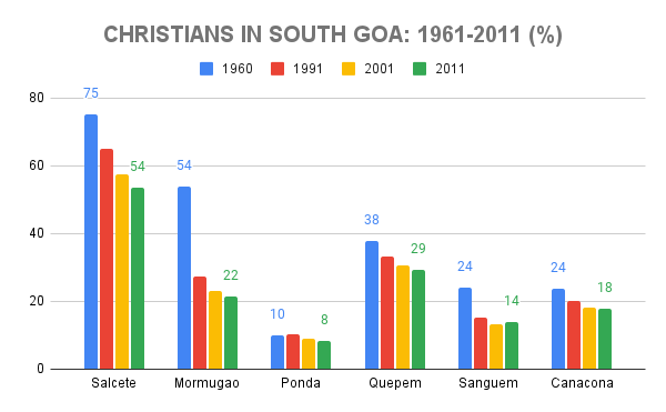 The nature of Christian domination has slowly started changing all across Goa’s political turf, mainly due to three factors: 1) Urbanisation of Hindus from the New Conquests to the city centres of the Old Conquests, 2) Huge amount of in-migration of labour and trading class, mostly belonging to the non-Christian faiths like Hindus and Muslims, and 3) Continued exodus of Goans, largely Christians, outside Goa and India, even by giving up Indian citizenship and their voting rights.