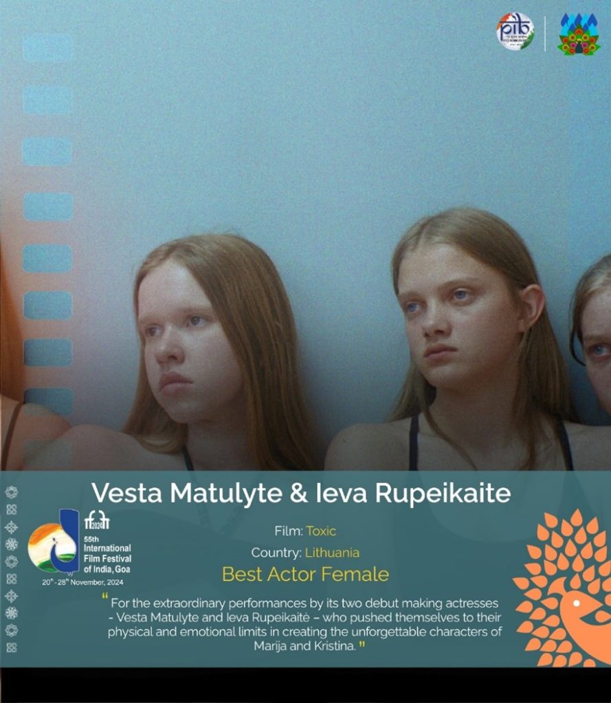 Lithuanian film Toxic triumphed with the coveted Golden Peacock for Best Film, while Romanian director Bogdan Muresanu claimed the Silver Peacock for Best Director for The New Year That Never Came, at the 55th International Film Festival of India that concluded in Goa today evening.