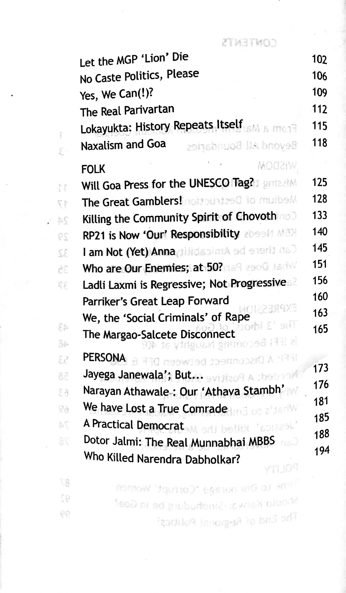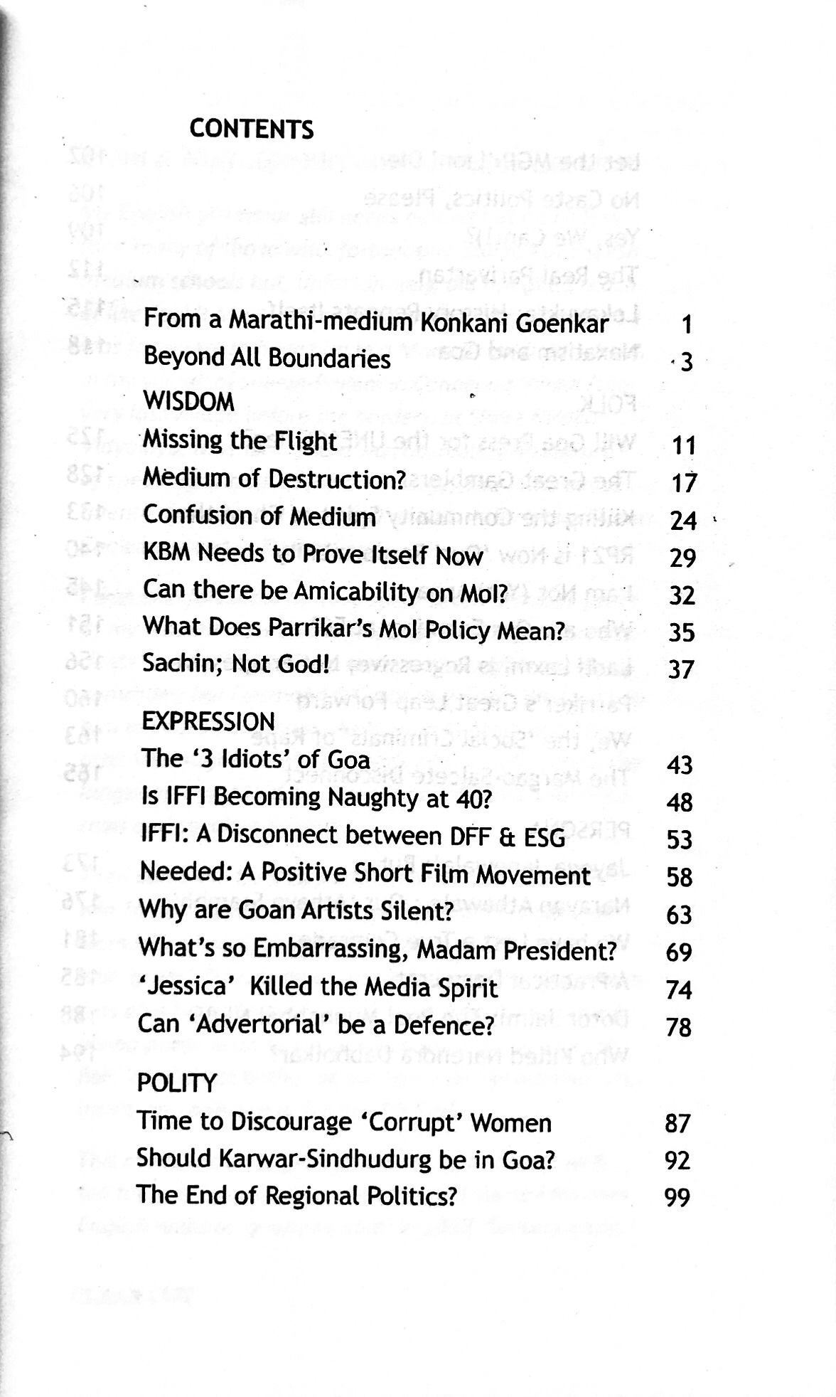 To know the varied facets of Goa, you must read this compilation of articles written by Sandesh Prabhudesai, a veteran journalist, who penned down his thoughts on his website goanews.com, Goa’s first news website since 1999. He writes on sociological and cultural aspects of Goa as well as various issues confronting the state like the Economy, Education, Culture, Literature, Folk as well as quite a few personalities.