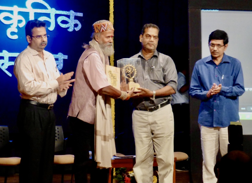 Veteran theatre artist Pradeep Vernekar recieving Goa State Culture Award for 2016